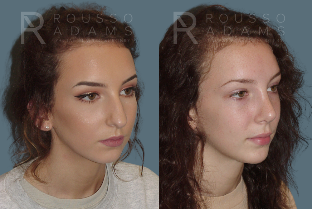 Dr. Adams performed a Rhinoplasty on this beautiful patient. Dr. Adams performed an open rhinoplasty and harvested septal cartilage. He addressed the dorsal hump deformity and the bulbous tip to create a balanced, feminine appearance that fit the rest of her facial features. She also opted for a combined procedure or Rhinoplasty and Chin Implant.